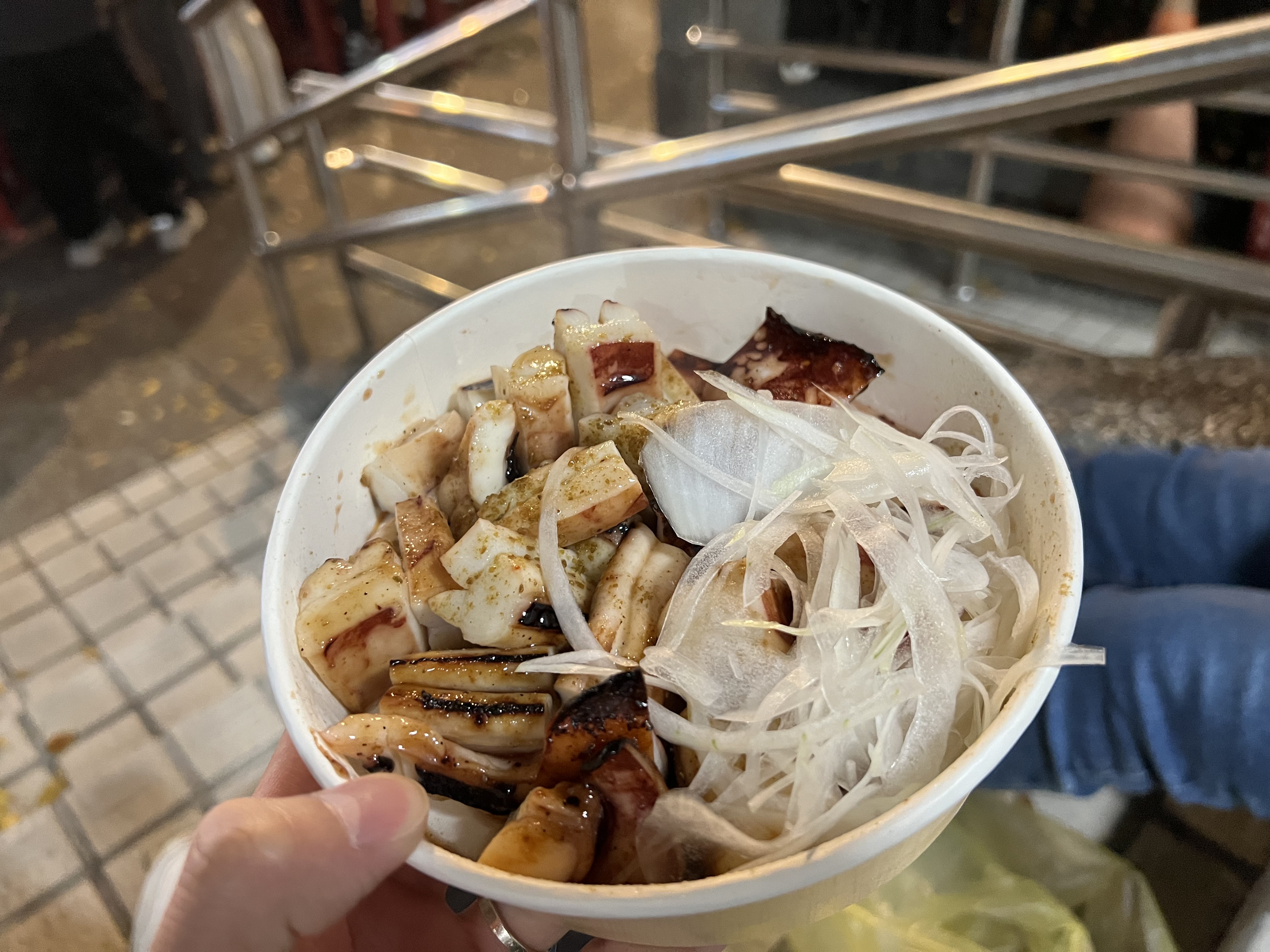 그리고 또 자주 보이던 음식인 오징어 구이와 고구마볼도 먹어 보았습니다.