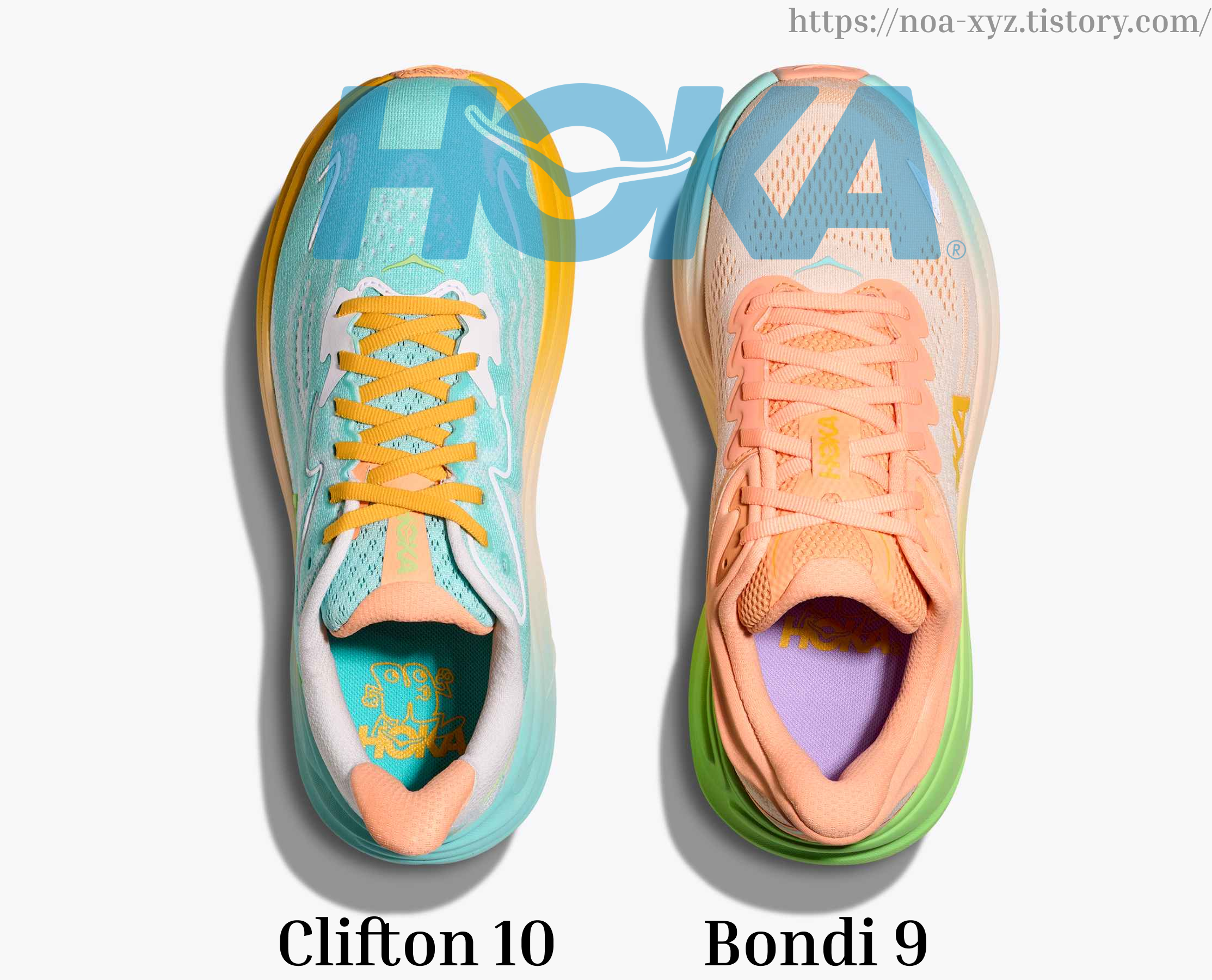 오늘은 HOKA의 대표 데일리 트레이너, 본디 9와 클리프턴 10을 구조적으로 비교해 보며,