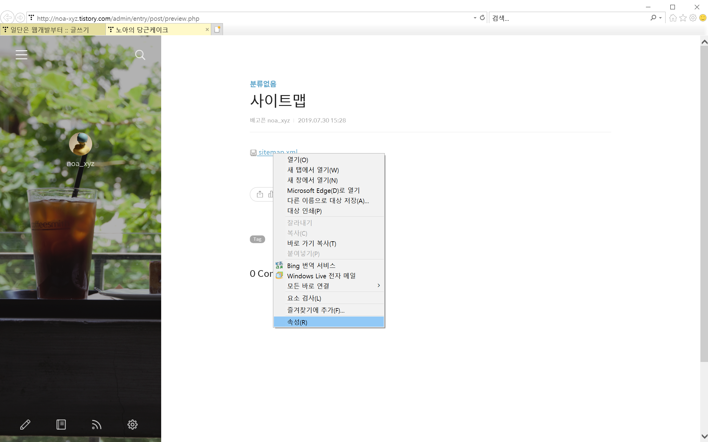 업로드한 사이트맵의 경로를 확인하기 위해서는 인터넷 익스플로러로 글을 작성해야 합니다.