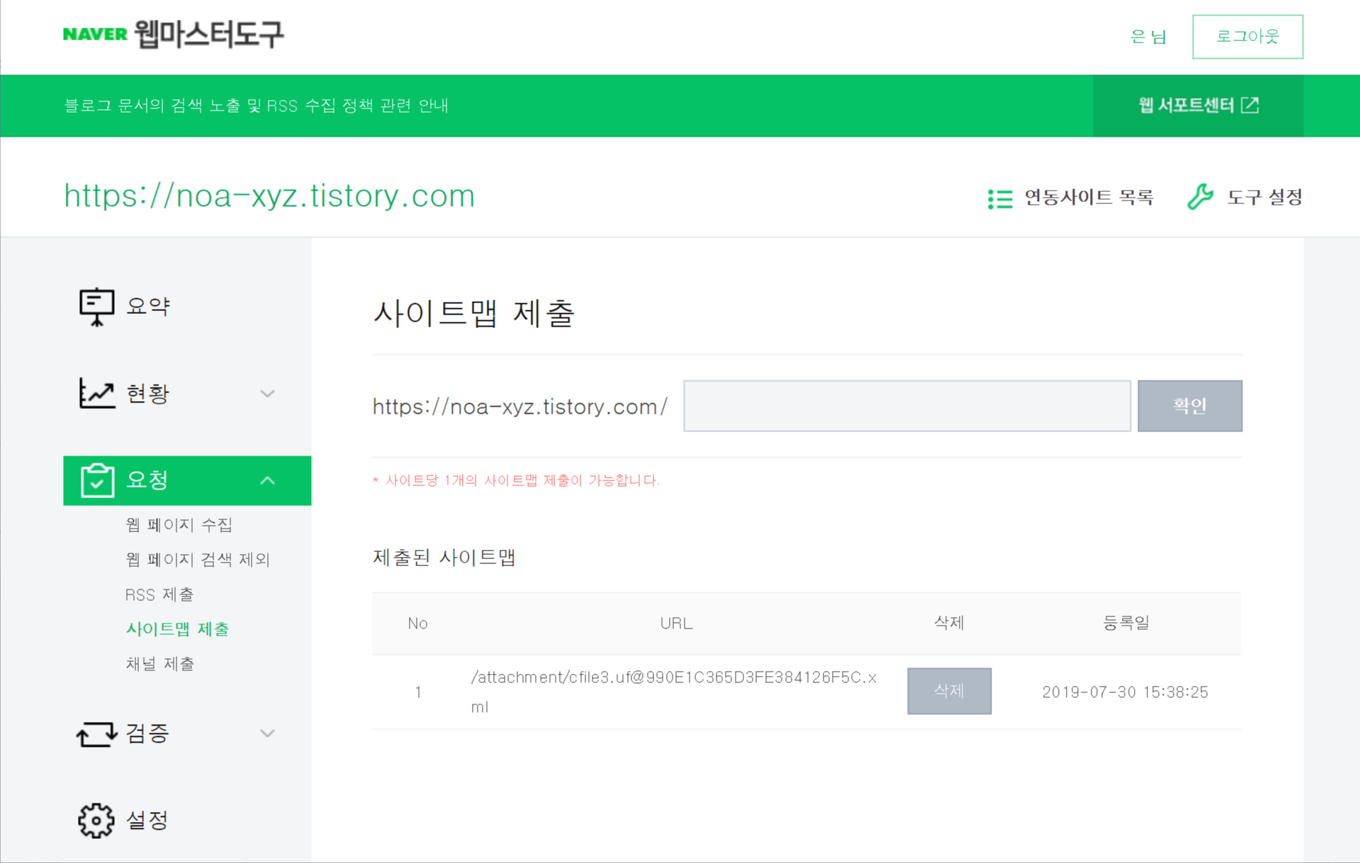 2. 네이버 웹마스터 도구에 사이트맵 제출하기
