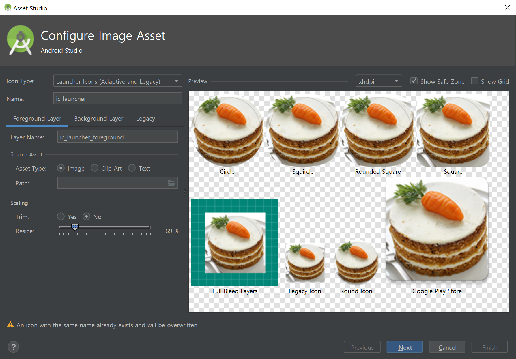 res 폴더를 우클릭하고 New > Image Asset을 선택합니다.
