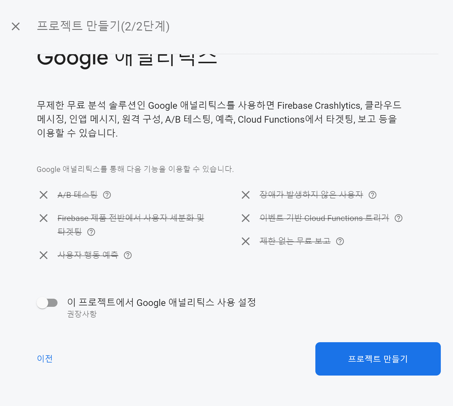 그럼 먼저, 파이어베이스 프로젝트를 만들도록 하겠습니다.