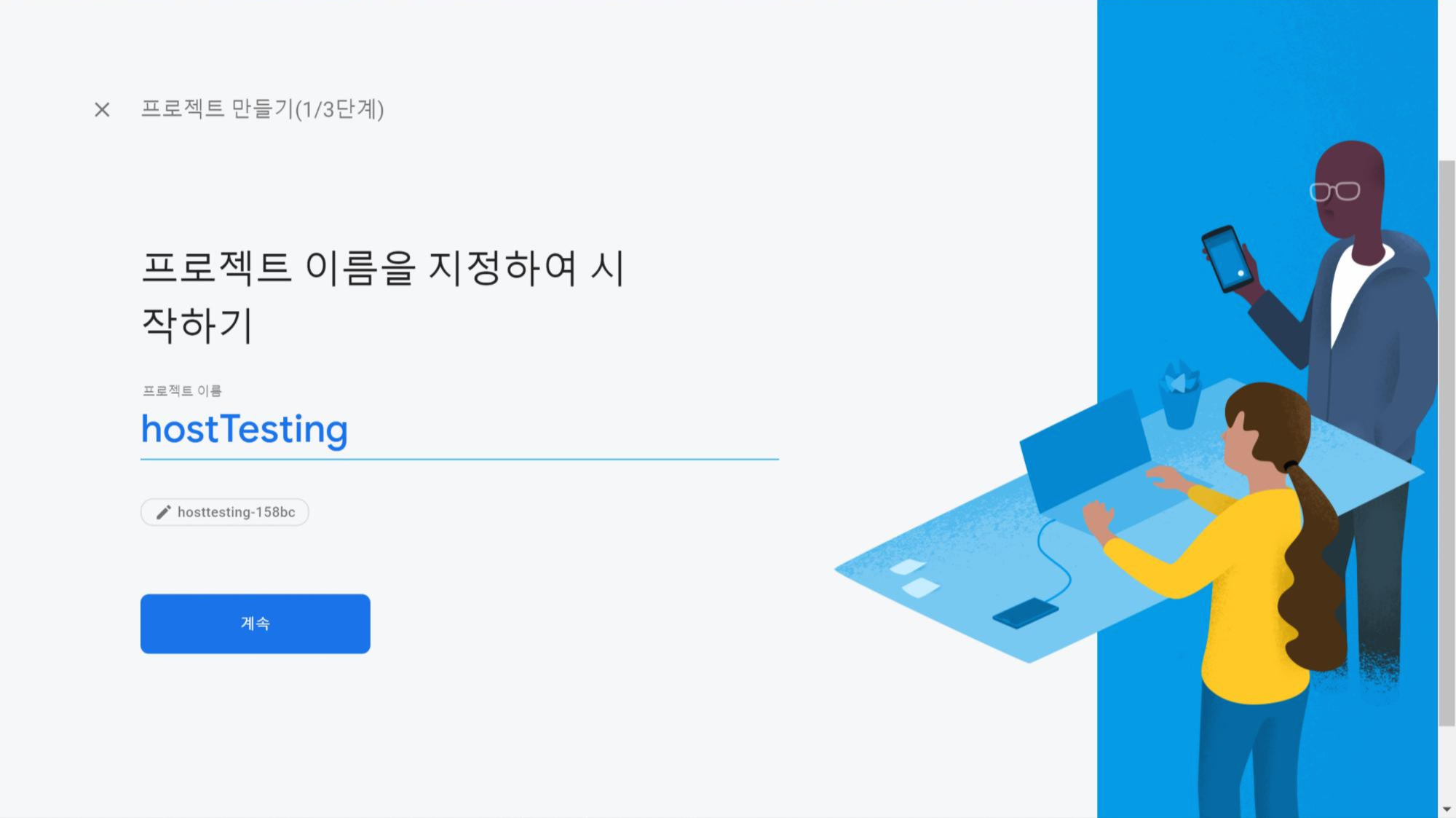 저는 hostTesting 으로 프로젝트 이름을 정했습니다.