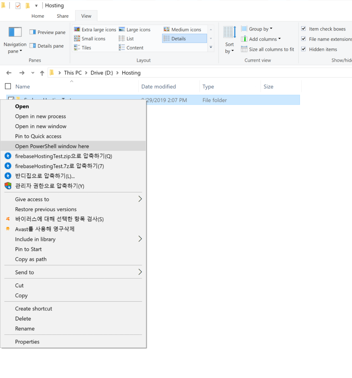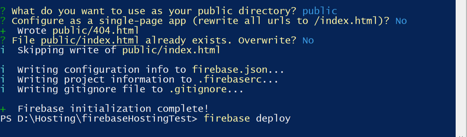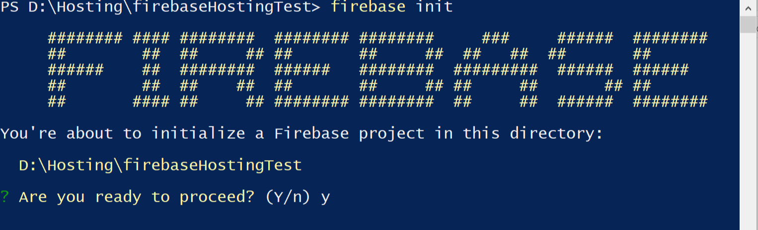 그럼 위와 같이 표시된 경로 PS D:\Hosting\firebaseHostingTest> 뒤에