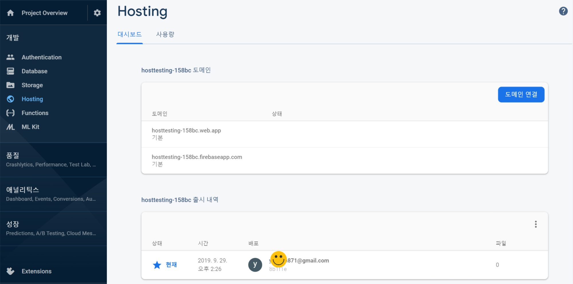 따라서 이 파이어베이스 프로젝트에 가비아/후이즈 등에서 구입한 도메인 주소를 연결하지 않고,