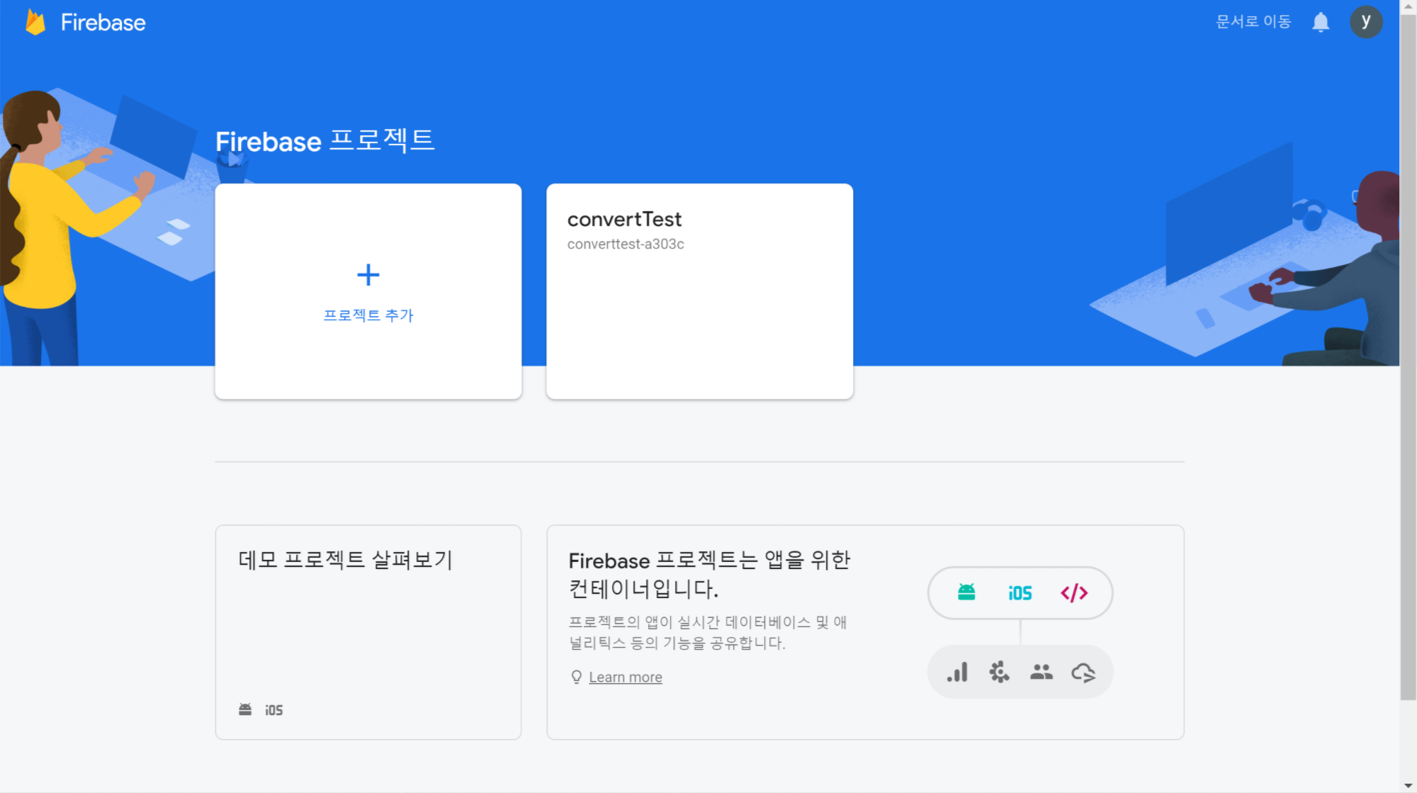 firebase의 프로젝트 페이지로 돌아옵니다.