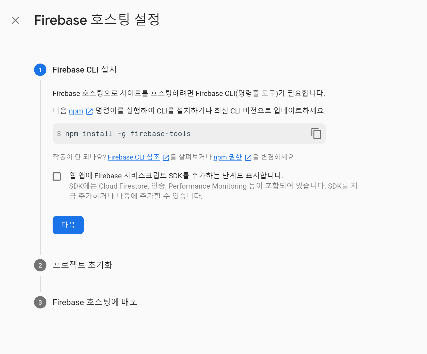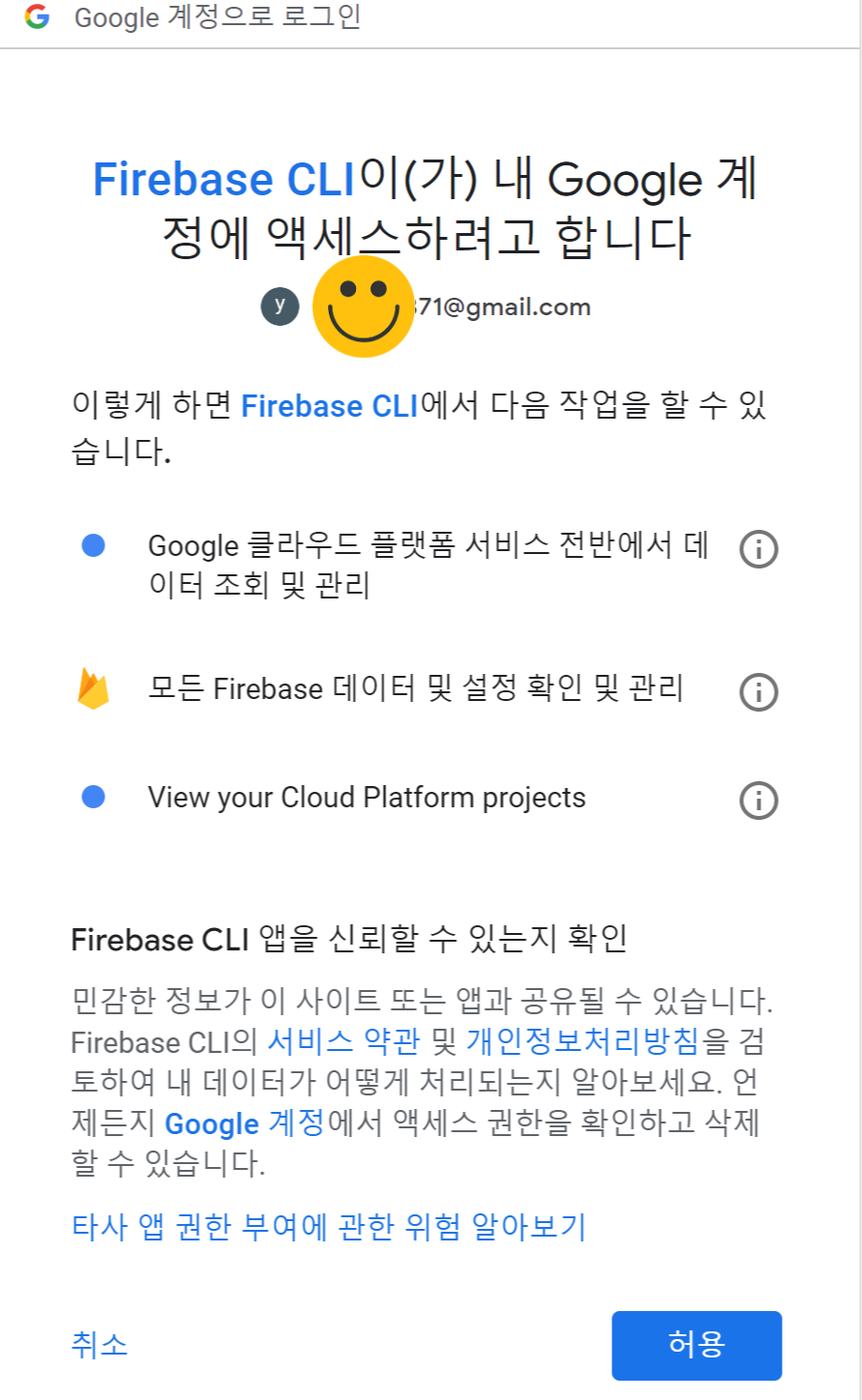 $ npm install -g firebase-tools 이라는 게 나왔군요.