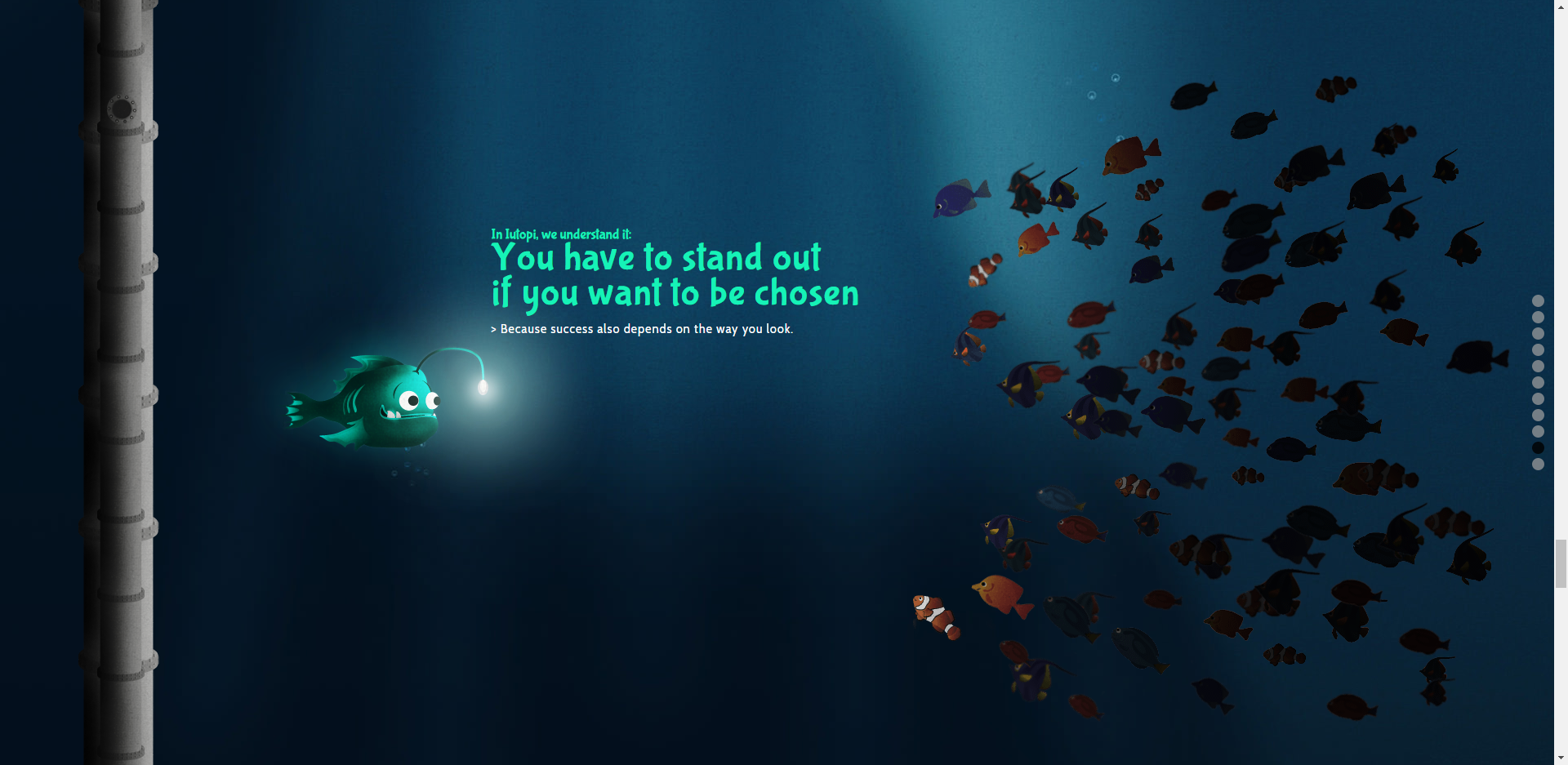 iutopi.com은 패럴랙스 스크롤링의 사용을 극대화했습니다.