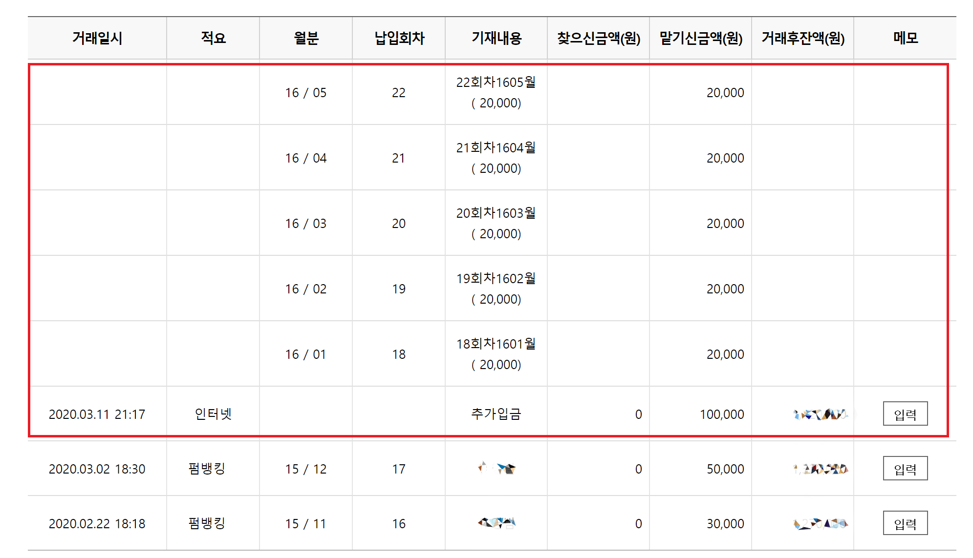 납입회차가 마치 2만 원씩 5번 납입한 것처럼 입력됩니다.
