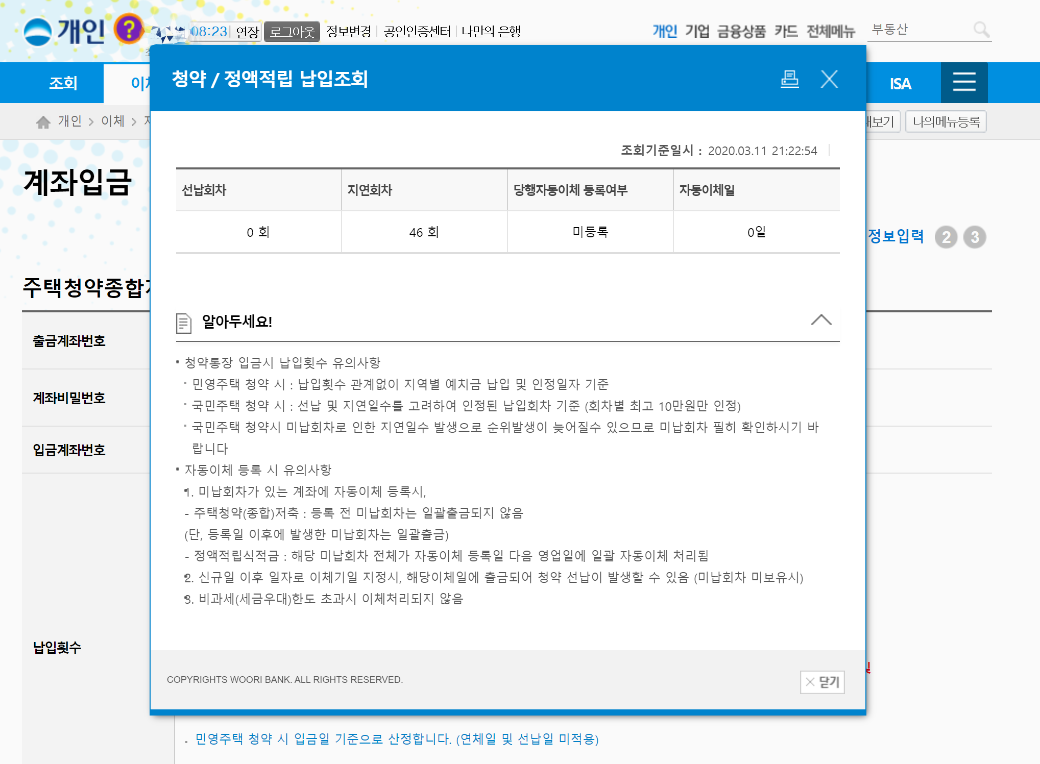 주택청약 납입 지연횟수 확인하기 + 지연 회차 일시납하기