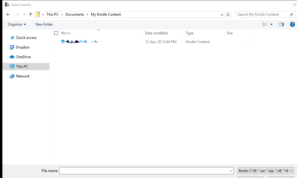 2. 내 문서 > My Kindle Content > 생성된 AZW 파일 선택