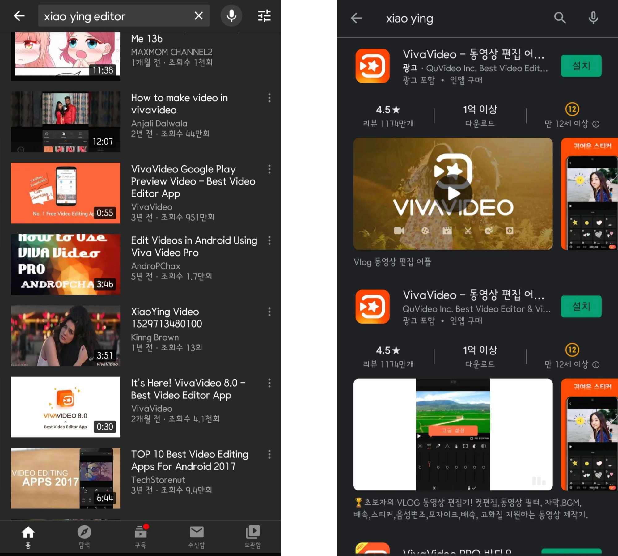관계가 있는 게 맞는가 싶어서, 플레이스토어에서 Xiao Ying을 검색하면 가장 위에 Viva Video 어플리케이션이 나오고,