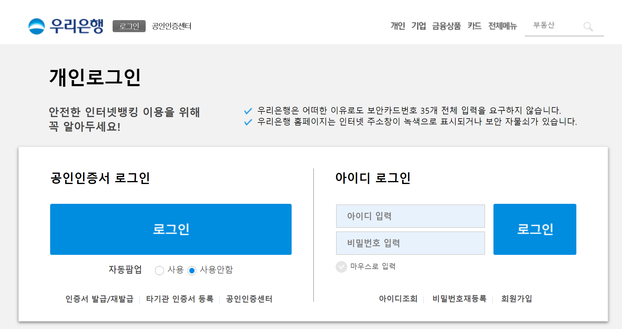 우리은행 홈페이지 링크입니다.