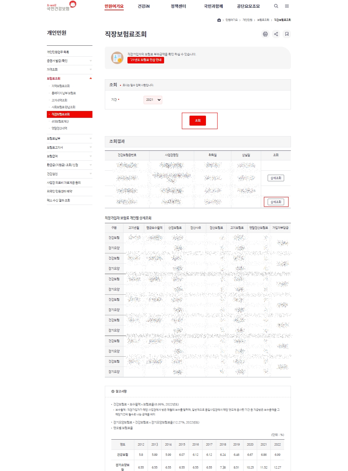 아래는 국민건강보험공단 홈페이지에서 보수월액과 보험료를 조회하는 방법입니다.