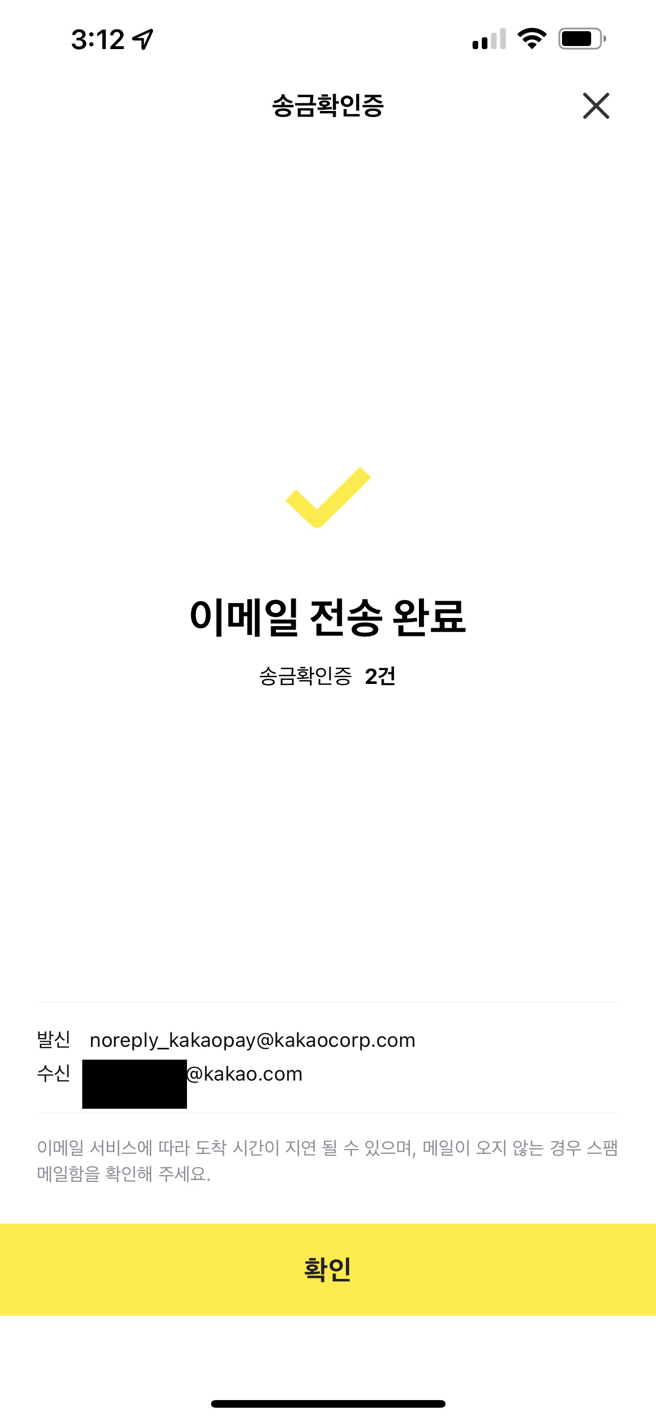 카카오 송금확인증은 pdf형식으로 이메일로 발급됩니다.