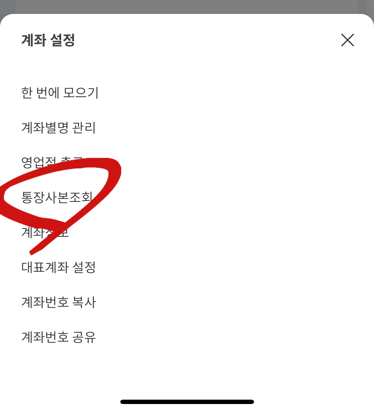아래와 같이 노출되는 메뉴 중 통장사본조회를 선택합니다.