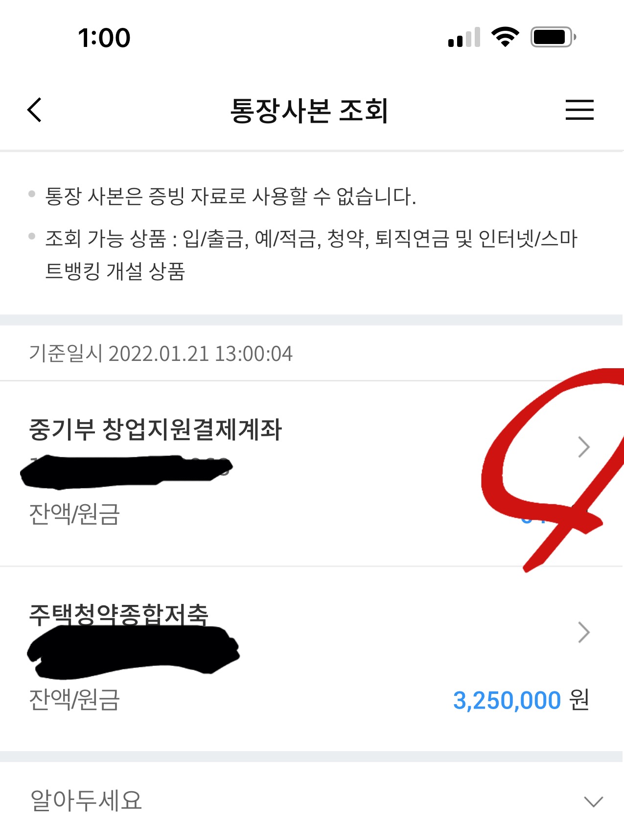 이 중에서 통장사본을 발급받고자 하는 계좌를 산택합니다.