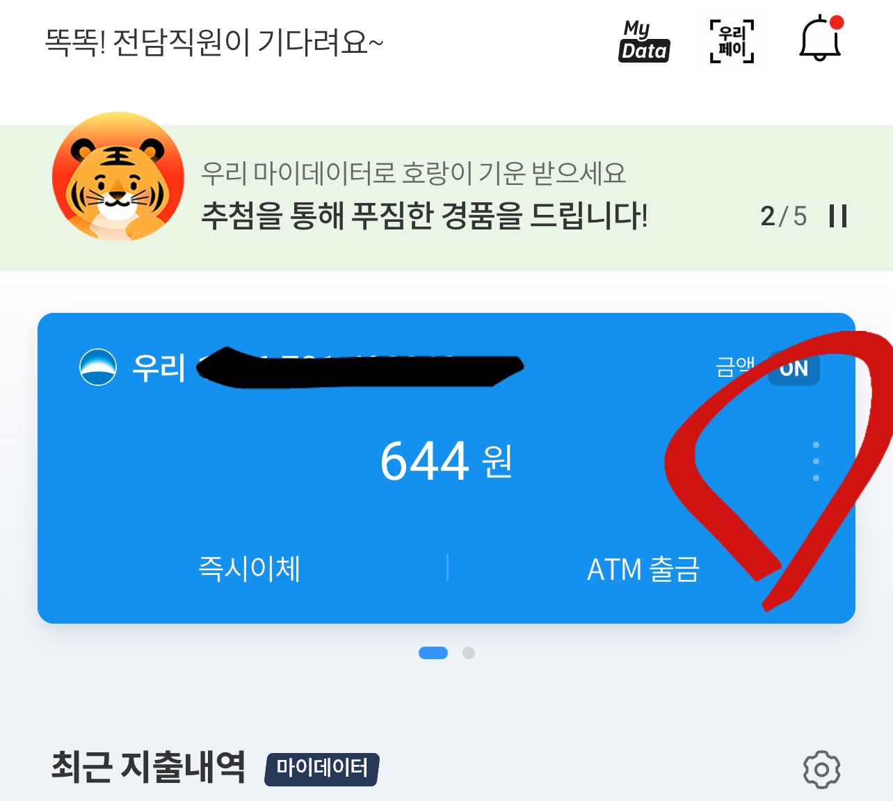 홈화면에 노출되는 주계좌 우측의 더보기를 선택합니다.