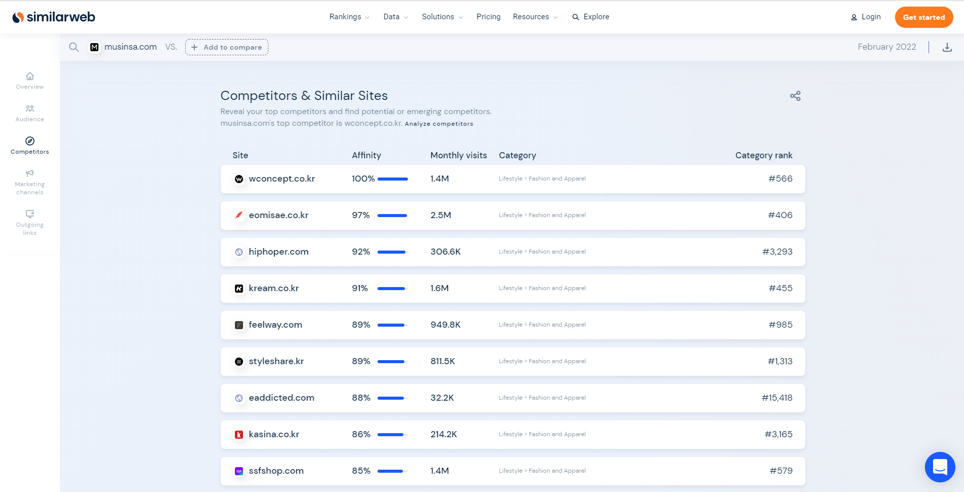 - 경쟁사로 유추되는 사이트 목록 제공