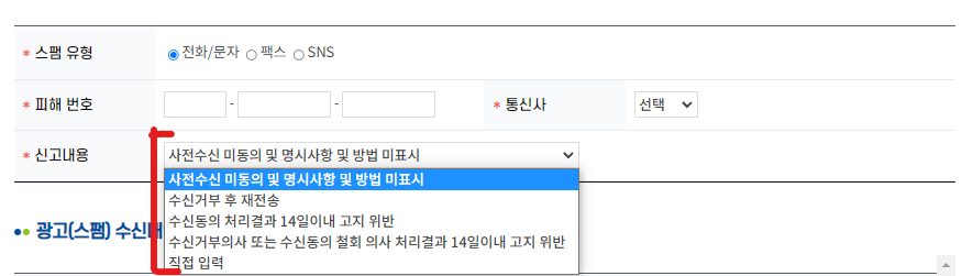 - 첨부파일: 해당 광고 메시지가 수신된 화면(가능한 한 발신 시간, 번호, 내용이 함께 보이도록)