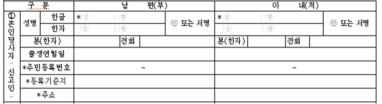 1. 혼인당사자(신고인)