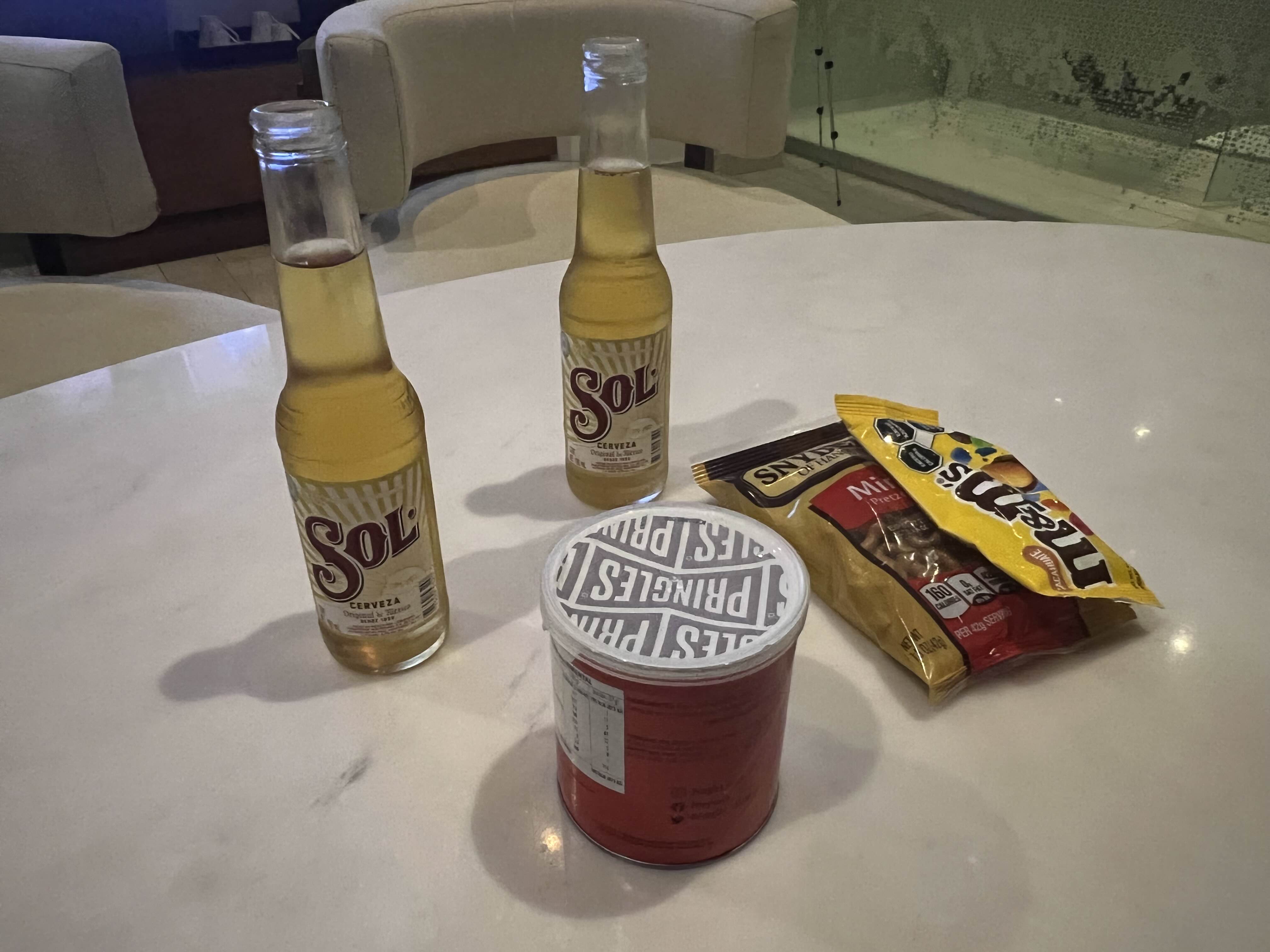 냉장고에 있는 맥주와 가지고 있는 간식을 털어먹기로 했습니다.