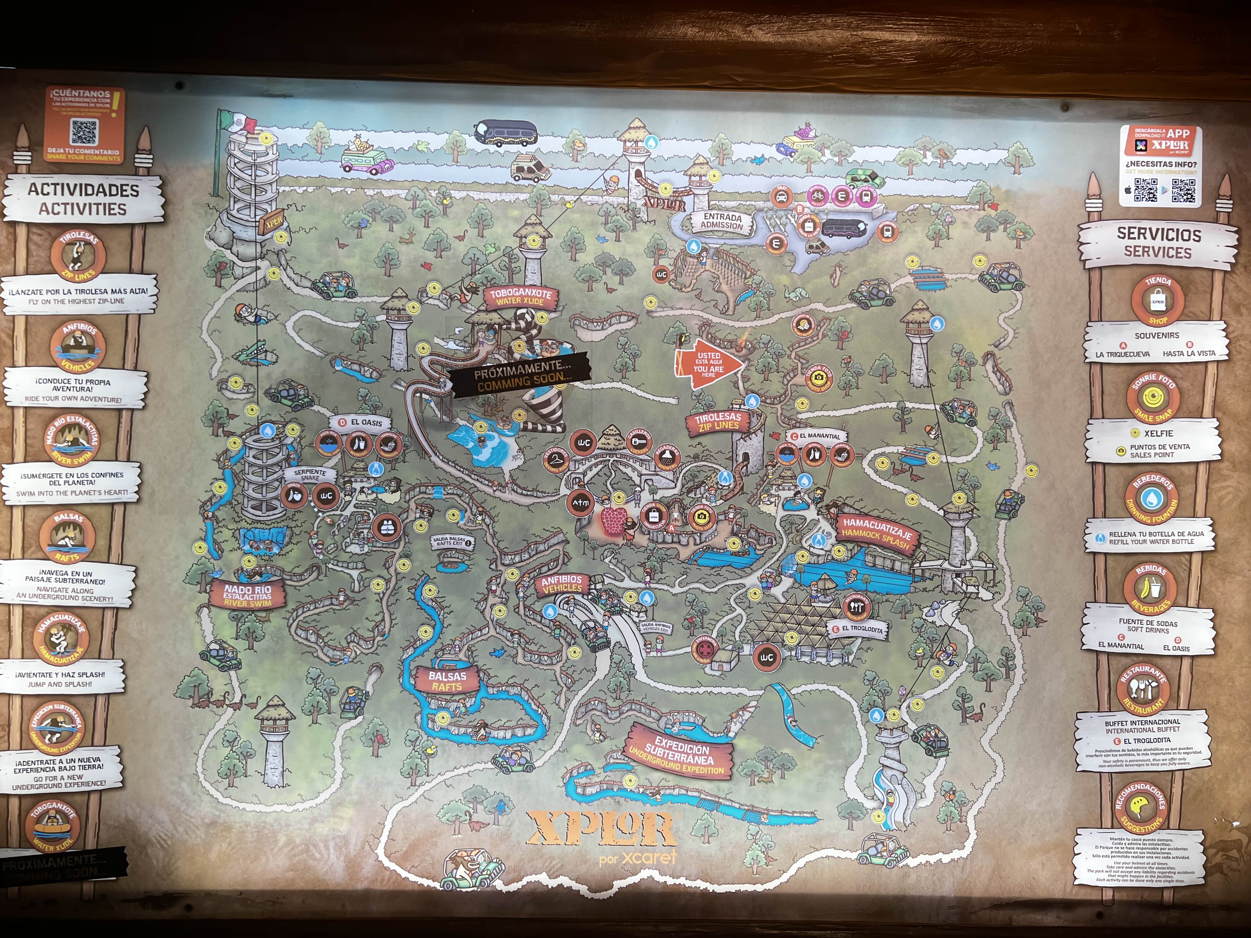 지도 왼쪽에는 어트랙션이, 오른쪽에는 편의시설이 나열되어 있습니다.