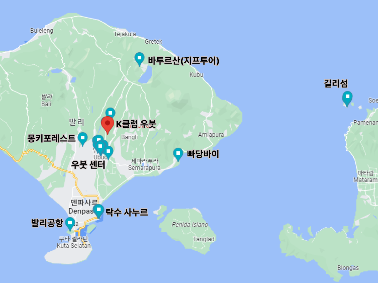 K클럽 우붓에서 발리 공항까지도 약 1시간 반 거리입니다.