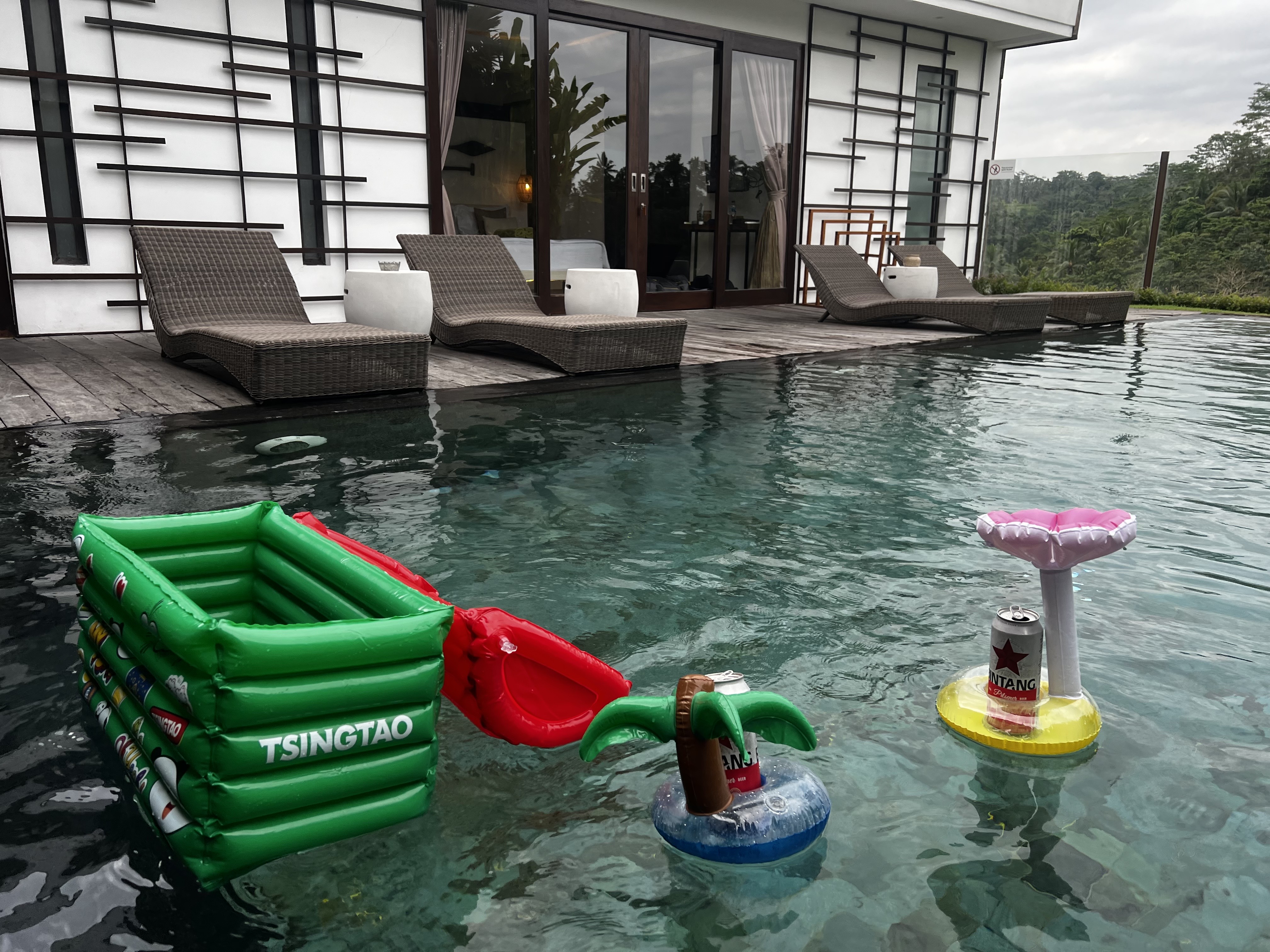 리셉션에서는 플라밍고 튜브 등 커다란 튜브도 대여해주고 있었습니다.