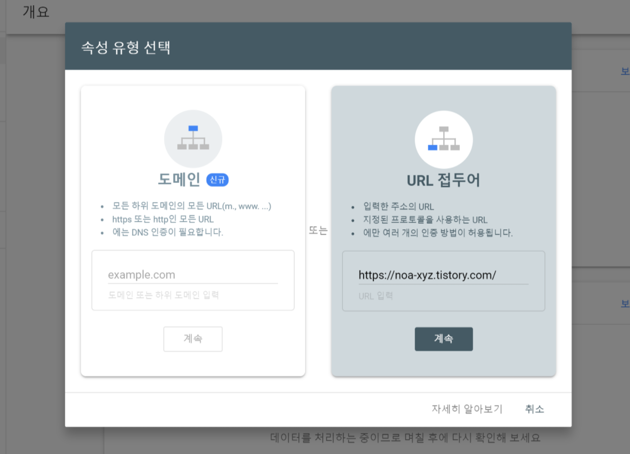 이 글에서는 우선 구글 서치콘솔 속성을 만들고 블로그의 소유권을 인증하는 절차까지 진행합니다.