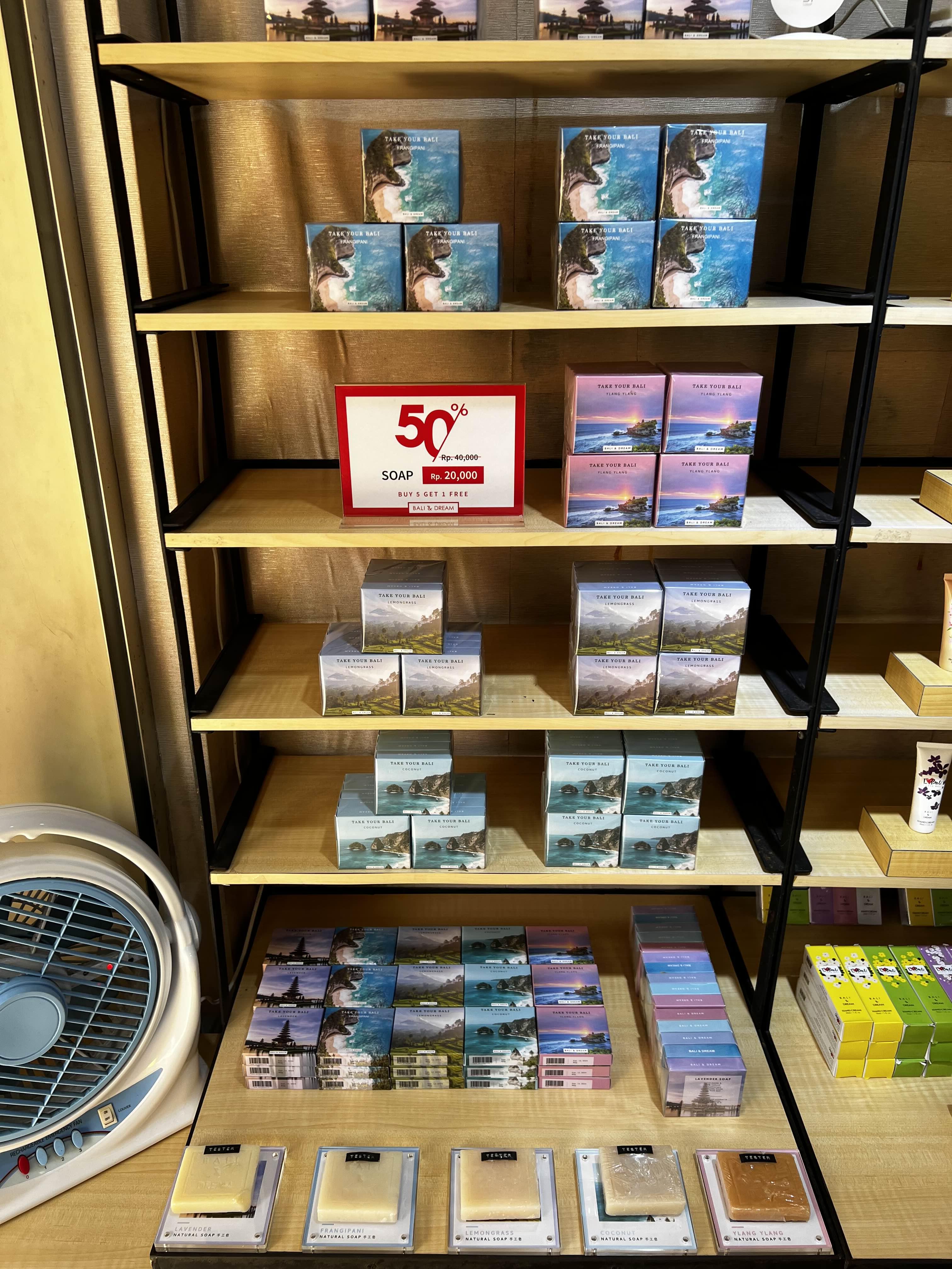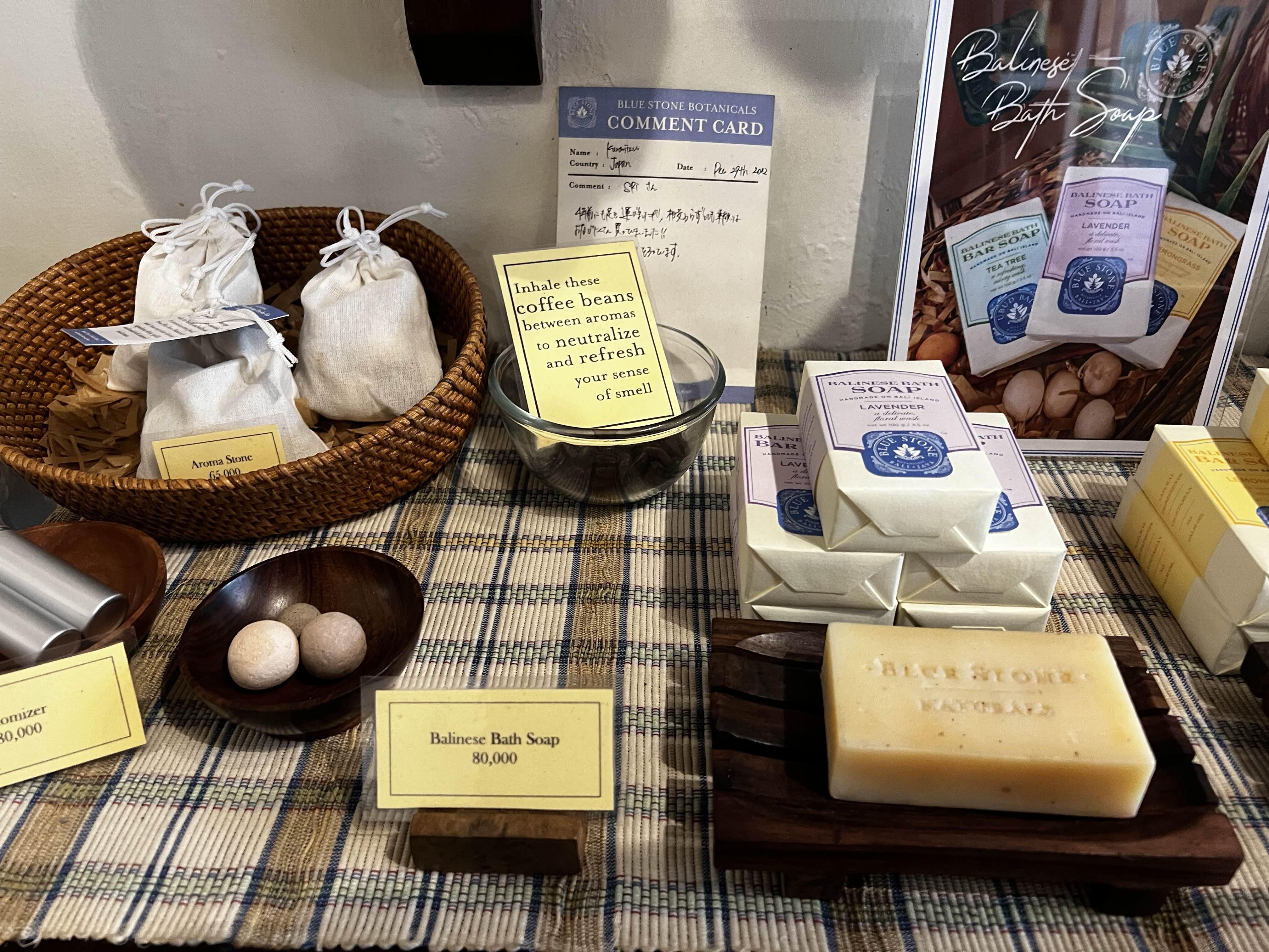 다양한 종류의 비누와 목욕 소금을 판매하고 있었습니다.