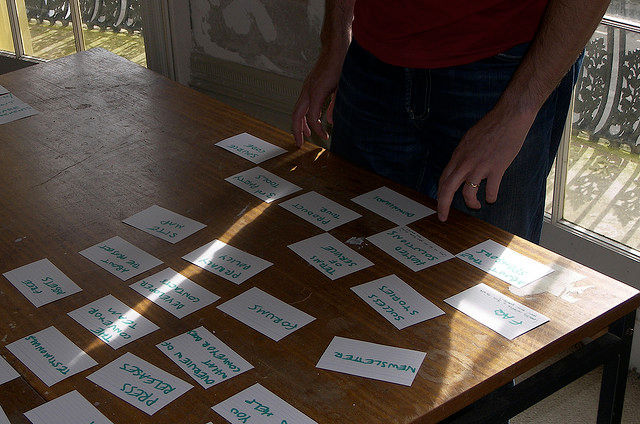 카드소팅은 UX리서치의 개념이 존재하기 한참 전부터 심리학 연구에서 사용하던 기법입니다. 방법은 단순하게, 각 카드에 단어나 문구를 작성하고 사용자에게 그것들을 분류하게 하는 것입니다. 나아가서, 사용자에게 각 분류에 대한 이름을 짓도록 요청할 수도 있습니다. 이것은 현재의 IA가 바르게 제공되고 있는지 알아보거나 새 서비스의 IA를 검증하기에 매우 좋은 방법입니다.