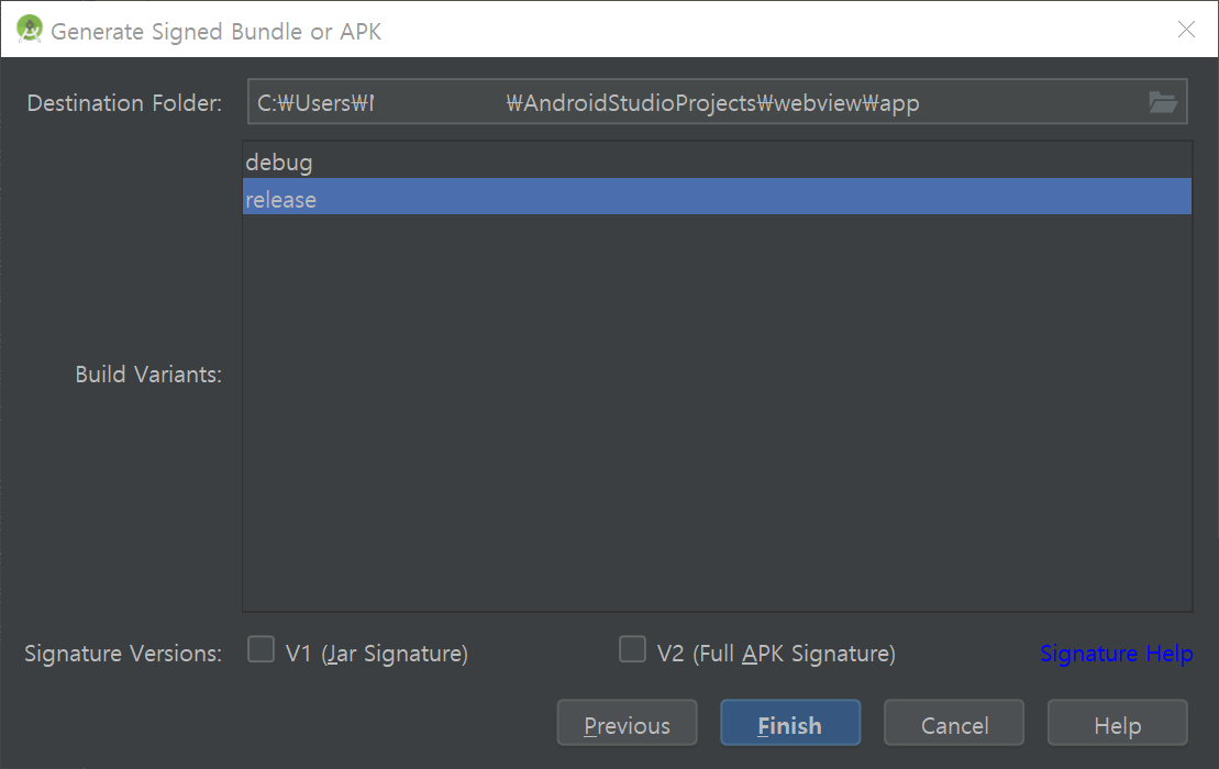 경로를 정해주고, release 선택,