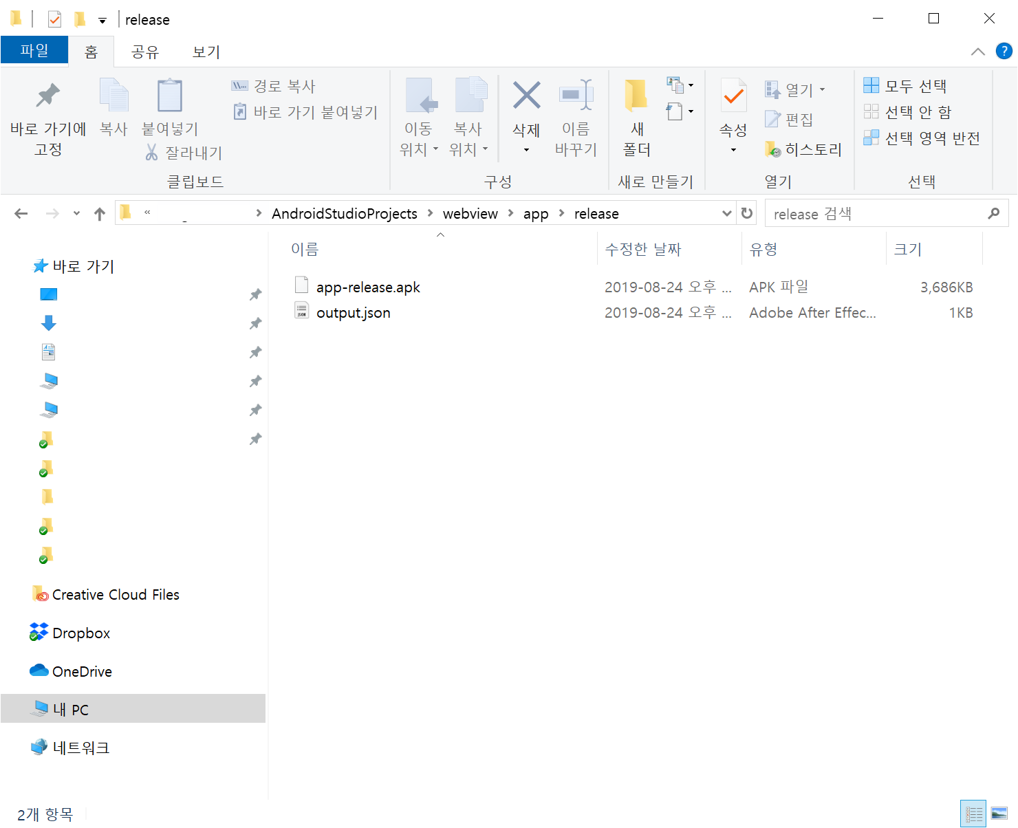 apk 파일이 생성되었습니다.
