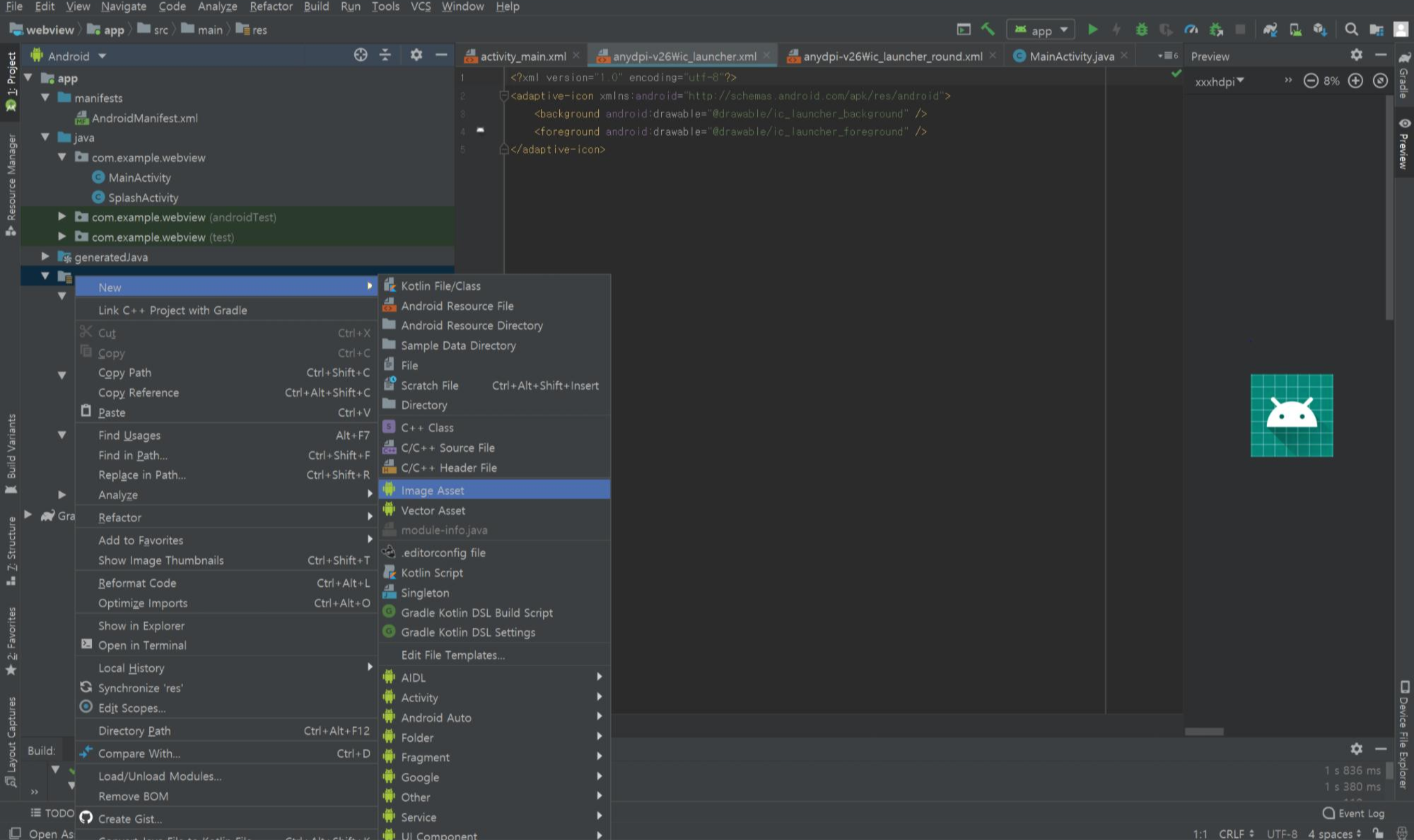 res 폴더를 우클릭하고 New > Image Asset을 선택합니다.